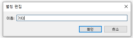 별칭 편집 팝업이 뜨면, '기타'를 입력해주고 확인을 눌러줍니다.