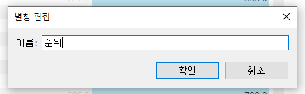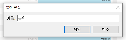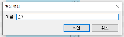 동일한 별칭을 사용하되, 뒤에 ' '(공백)을 하나 넣어주시면 됩니다. '순위 '라고 작성한 뒤 확인을 눌러줍니다.